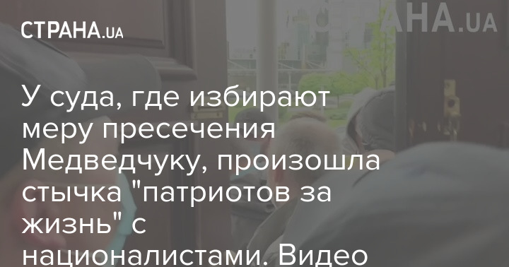 У входа в Печерский районный суд Киева, где проходит заседание по избранию меры пресечения главе политсовета партии ОПЗЖ Виктору Медведчуку, произошла стычка между националистами и членами организации нардепа от этой же политсилы Ильи Кивы "Патриоты за жизнь".