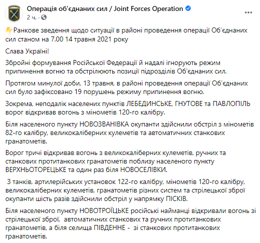 Кроме того, добавили в ООС, в результате обстрелов погиб украинский военнослужащий. Он получил пулевое ранение несовместимо с жизнью.