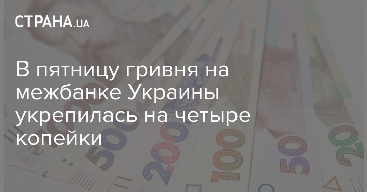 В пятницу гривня на межбанке Украины укрепилась на четыре копейки