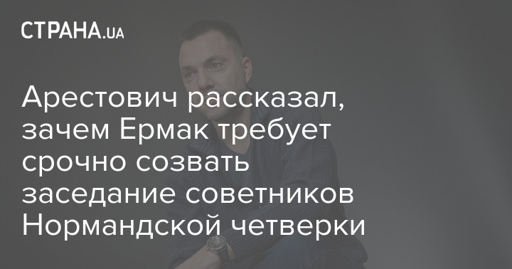 Спикер украинской делегации в Трехсторонней контактной группе Алексей Арестович прокомментировал "Стране" инициативу главы Офиса президента Андрея Ермака о проведении срочного заседания политсоветников Нормандской четверки.