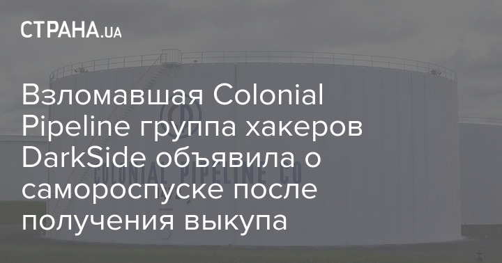 Криминальная группа хакеров DarkSide, которую власти США обвиняют в проведенной 7 мая кибератаке на топливопровод Colonial Pipeline, приняла решение о роспуске.