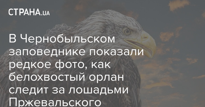 В Чернобыльском заповеднике показали редкое фото, как белохвостый орлан следит за лошадьми Пржевальского