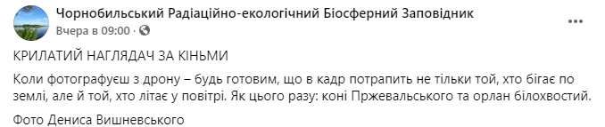 "Когда фотографируешь с дрону – будь готов, что в кадр попадет не только тот, кто бегает по земле, но и тот, кто летает в воздухе. Как на этот раз: кони Пржевальского и орлан белохвостый", - говорится в сообщении.