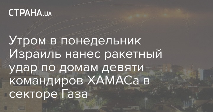 Утром в понедельник Израиль нанес ракетный удар по домам девяти командиров ХАМАСа в секторе Газа