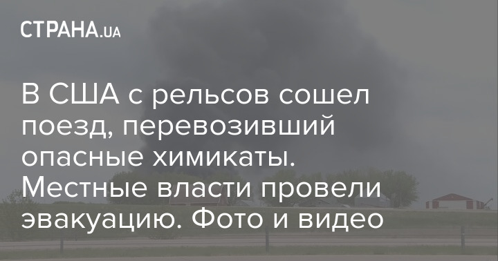 В США с рельсов сошел поезд, перевозивший опасные химикаты. Местные власти провели эвакуацию. Фото и видео