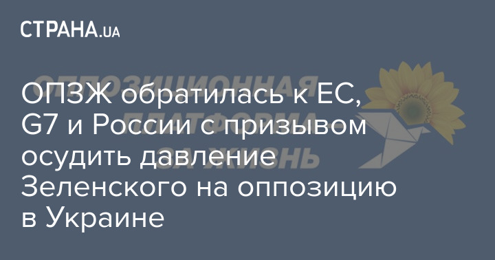 ОПЗЖ обратилась к ЕС, G7 и России с призывом осудить давление Зеленского на оппозицию в Украине