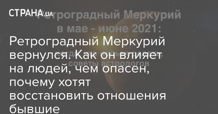 "Страна" рассказывает, что означает данное астрологическое событие, как оно влияет на человека, чем опасно, почему в нашу жизнь возвращаются бывшие. Отвечаем на эти вопросы и публикуем советы астрологов - что рекомендовано делать, а что лучше отложить.
