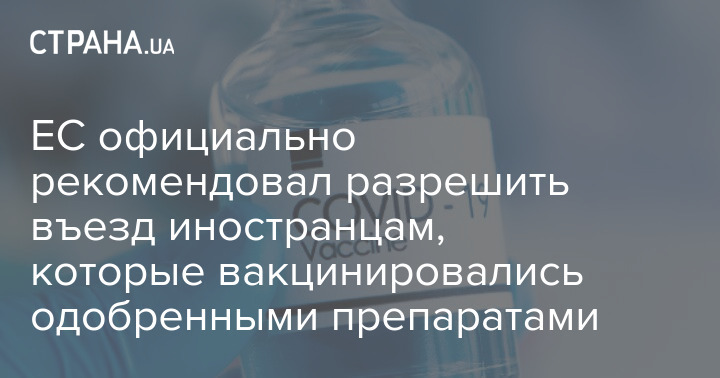 В Евросоюзе приняли решение разрешить въезд в страны ЕС гражданам третьих стран, которые вакцинировались от Covi-19 одобренными ЕМА или ВОЗ препаратами за две недели до поездки.