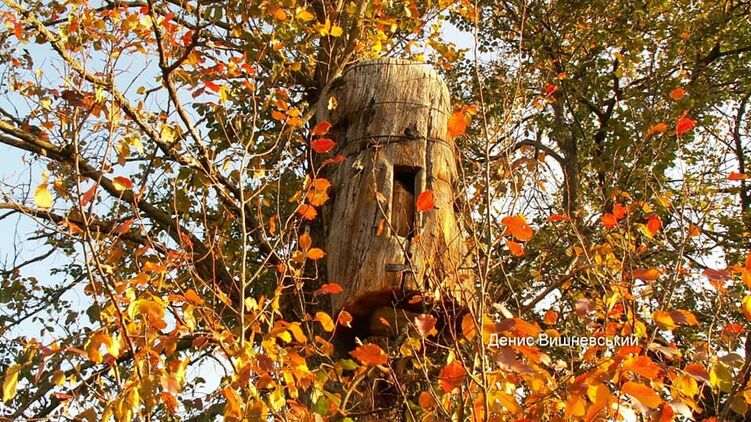 На заповедной территории на некоторых больших старых деревьях еще остались старые колодные ульи - борты.