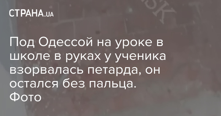 Петарда взорвалась в руках 13-детнего школьника прямо в классе во время урока. В результате взрыва подростку оторвало палец. Инцидент произошел в школе Подольска Одесской области, сообщается на сайте региональной Нацполиции.