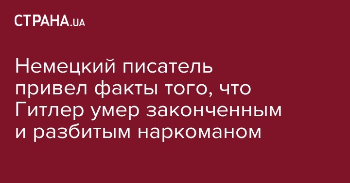 Немецкий писатель Норман Олер опубликовал книгу, где приводит факты и доказательства того, что покончивший жизнь самоубийством фюрер разгромленного третьего рейха Адольф Гитлер и его окружение были законченными наркоманами. Книга The Total Rush рассказывает об употреблении нацистами различного вида наркотиков - кокаина, героина, метамфетамина и морфина, сообщает Росбалт.