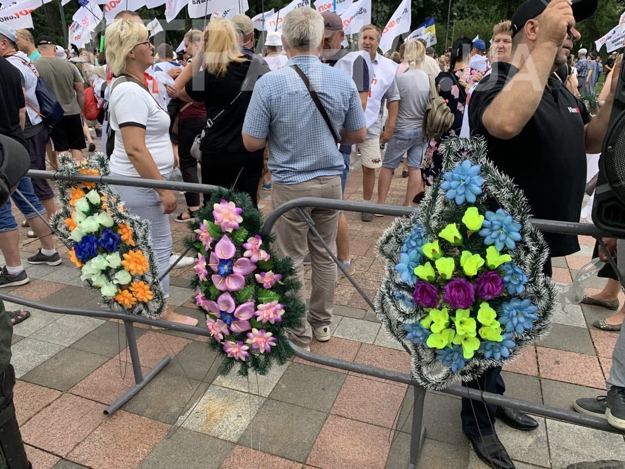 У Верховной Рады они продолжили выкрикивать такие лозунги. Прикрепили  траурные венки к металлической ограде возле парламента.