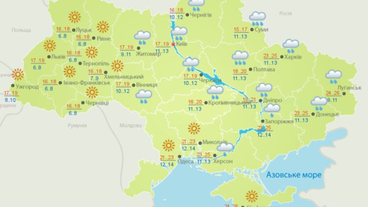 Дожди и грозы. Появилась карта прогноза погоды в Украине по областям на 24 мая