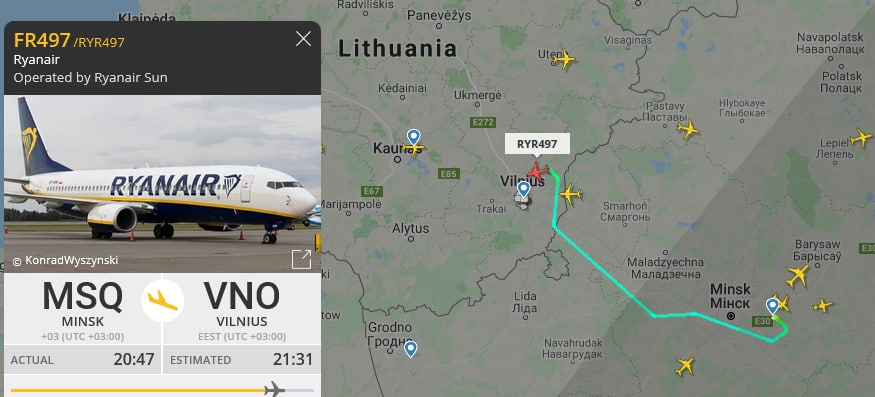 Вечером в воскресенье, пассажирский самолет авиакомпании Ryanair, ранее экстренно садившийся в Минске после чего с него был снят основатель НЕХТЫ Роман Протасевич, приземлился в аэропорту Вильнюса.