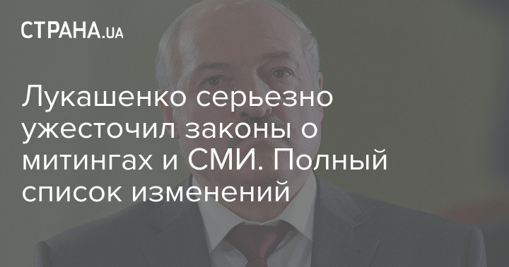 Президент Беларуси Александр Лукашенко утвердил изменения в законодательстве республики, которые, в частности, предусматривают запрет на проведение массовых мероприятий без разрешения местных органов власти, а также на освещение несанкционированных мероприятий в СМИ в режиме реального времени.