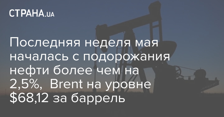 Последняя неделя мая началась с подорожания нефти более чем на 2,5%, Brent на уровне $68,12 за баррель