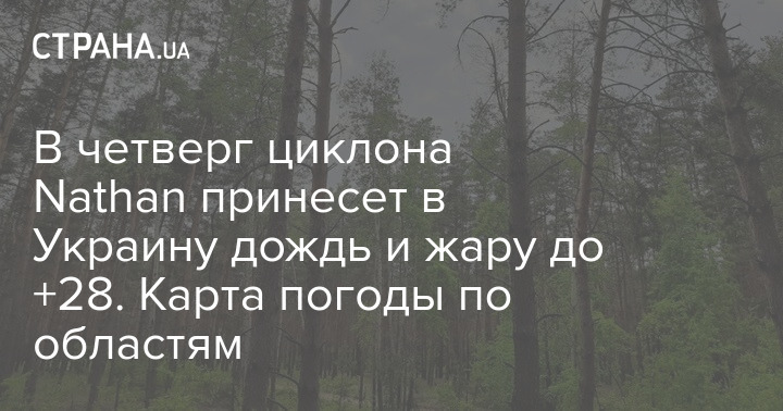 В четверг циклона Nathan принесет в Украину дождь и жару до +28. Карта погоды по областям