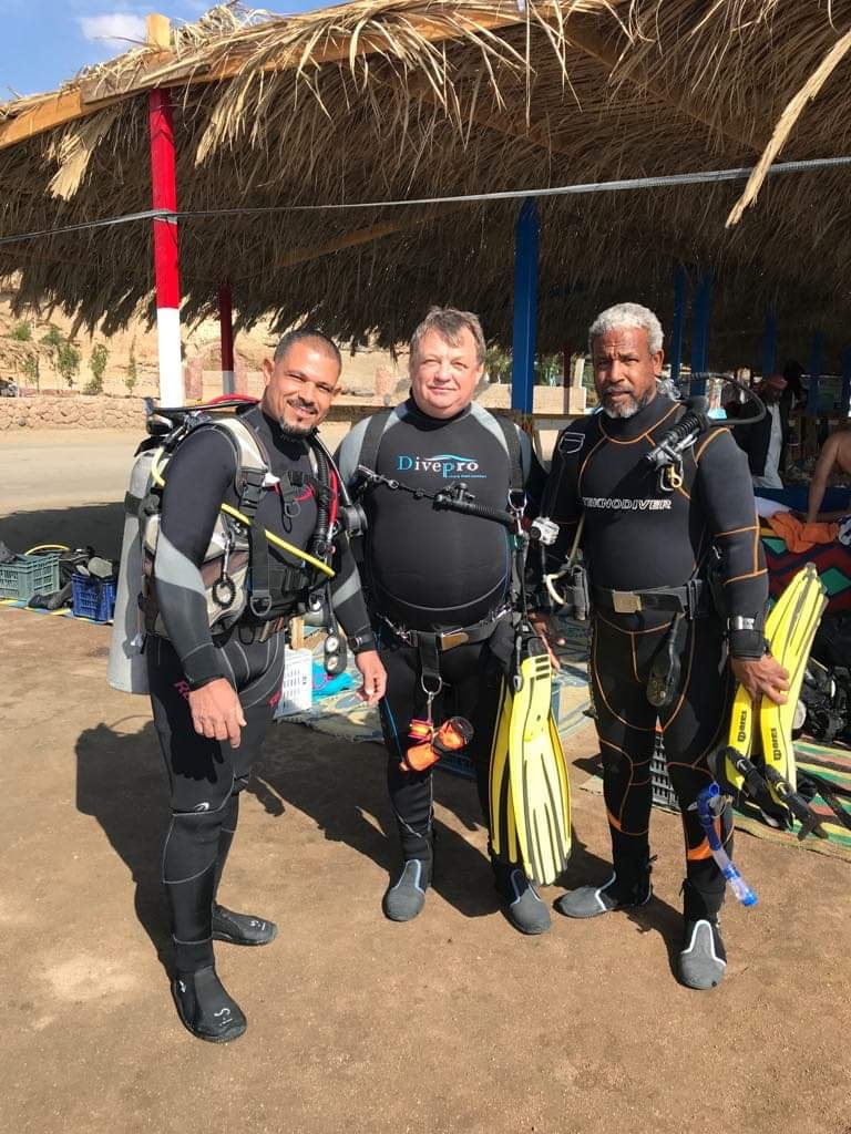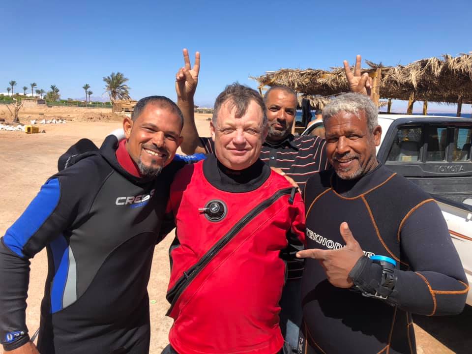 Виктор Гвоздь (в центре) с друзьями-дайверами во время последней поездки в Египет