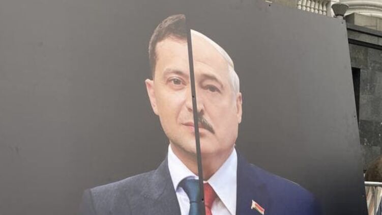 На нем президент Украины Владимир Зеленский наполовину предстает в обличии главы Беларуси Александра Лукашенко.