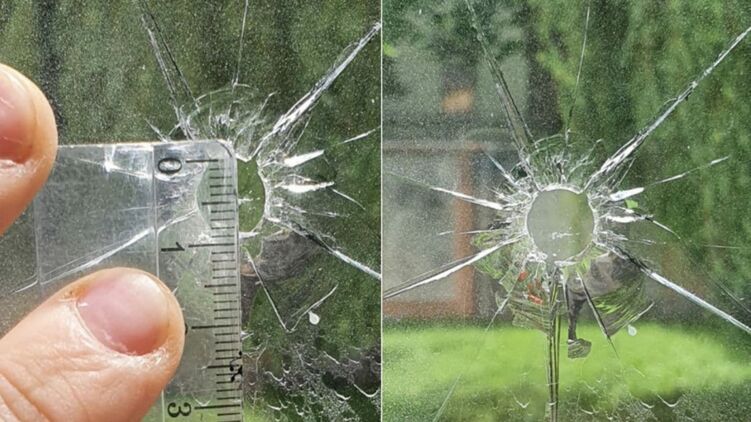 Мнение специалистов по этому инциденту разделились. Одни считают, что в окно стреляли из пневматического оружия, другие, что из травматического. Размер отверстия составляет девять миллиметров.