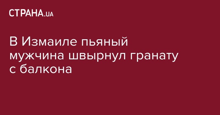 В среду, 28 сентября, полицейские города Измаила получили сообщение, что на углу улиц Шевченко и Грушевского взорвался неизвестный предмет. На месте выяснилось, что 28-летний мужчина, проживающий на пятом этаже, бросил на землю гранату РГД-5 с балкона своей квартиры.