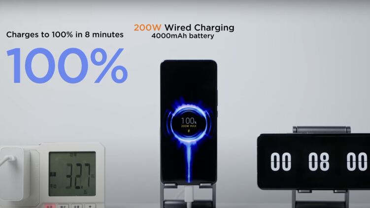 По данным Xiaomi, новое зарядное устройство способно полностью зарядить телефон за 8 минут с помощью проводной системы "HyperCharge" мощностью 200 Вт или за 15 минут с помощью беспроводной зарядки мощностью 120 Вт. В специальный блок питания разработчики добавили провод, способный передавать высокое электрическое напряжение.