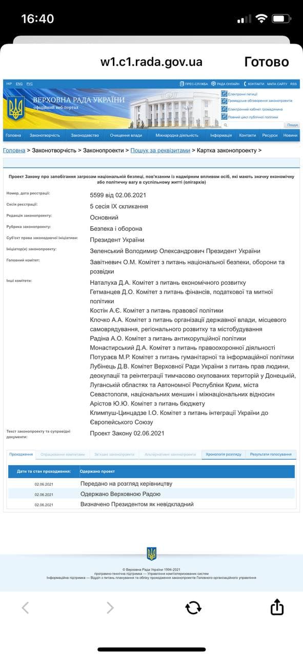 Текста "Проекта Закона о предотвращении угроз национальной безопасности, связанных с чрезмерным влиянием лиц, имеющих значительный экономический или политический вес в общественной жизни (олигархов)" на сайте пока нет. Законопроект обозначен как президентом как неотложный.