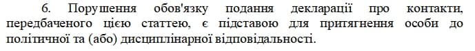В случае неподачи декларации чиновника или депутата ждет два вида ответственности - политическая и дисциплинарная. Что может означать как выговор, так и увольнение (иначе термин "политическая" прочитать невозможно).