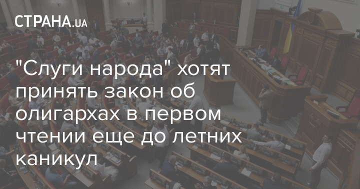 Парламентский комитет по вопросам национальной безопасности, обороны и разведки рассмотрит президентский законопроект об олигархах не раньше, чем через две недели. Тем временем в пропрезидентской партии "Слуга народа" рассчитывают, что документ примут в первом чтении до парламентских каникул, которые начинаются в июле.
