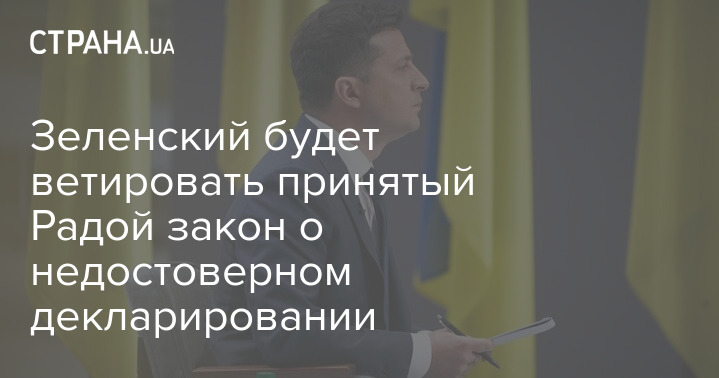 Президент Владимир Зеленский будет ветировать принятый 3 июня парламентом закон об ответственности за декларирование недостоверной информации.  По его словам, он не допустит ослабления ответственности за это правонарушение, а закон в принятом виде неприемлем.