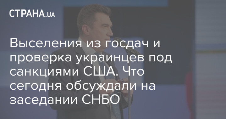 7. Обсуждались вопросы выселения людей с госдач, которые, по мнению СНБО, не имеют права там проживать. Данилов перечислил фамилии людей, которые уже "находятся в процессе выселения". В из числе - Дмитрий Табачник, Раиса Богатырёва, Святослав Пискун, Александр Лавринович.