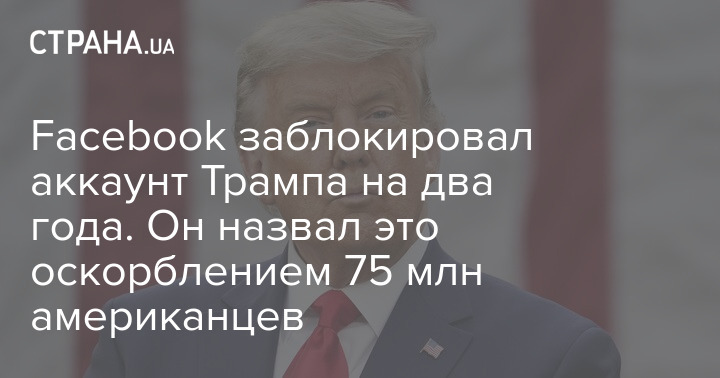В свою очередь, Трамп, как передает "Интерфакс-Украина" расценил решение компании Facebook на два года приостановить работу его аккаунтов в этой соцсети и в Instagram как неуважение к более чем 70 млн американцам и покушение на свободу слова.
