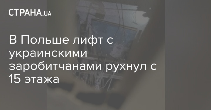 В польском городе Лодзь с 15-этажа здания оборвался лифт с двумя украинцами 41 и 42 лет. По данным спасателей, мужчины работали над крышей лифта когда по неизвестной причине кабина рухнула с большой высоты. В результате оба пострадали, один из украинцев находится в тяжелом состоянии.