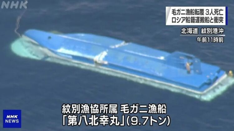 Напомним, что столкновение судов произошло недалеко от побережья 26 мая в территориальных водах Японии. Японское судно перевернулось, трое японских рыбаков погибли, еще трое выжили, их доставили на берег. Россияне не пострадали.