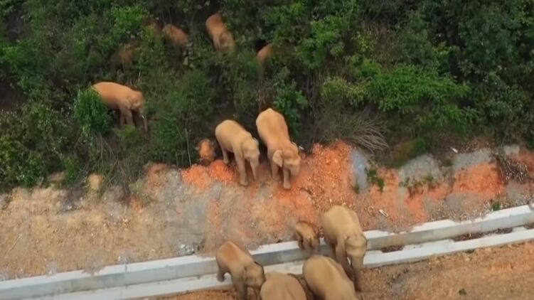 В Китае, в провинции Юньнань стадо диких азиатских слонов весной покинули заповедник и начали миграцию на север. Животные прошли уже более 500 километров, в начале они шли по малонаселенной местности, а сейчас дошли до столицы провинции - Куньмина.