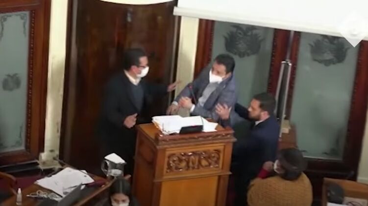Причиной для драки стало рассмотрение вопроса законности ареста депутата Жанин Аньес, которая исполняла обязанности президента Боливии в 2019-2020 годах после отставки Эво Моралеса.
