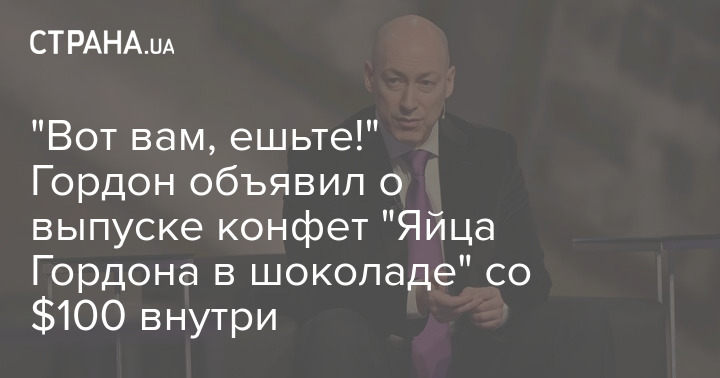 "Мне тут посоветовали хорошую идею, я над ней думаю сейчас...Производить такие, как киндер-сюрпризы, под названием "Яйца Гордона в шоколаде". В коробке будет по две штуки, а в одной штуке на партию будет сто долларов лежать. Вот вам "Яйца Гордона в шоколаде", ешьте, приятного аппетита! Этот тот случай, когда ты вкладываешь в себя и имя работает на тебя", - поделился планами журналист.