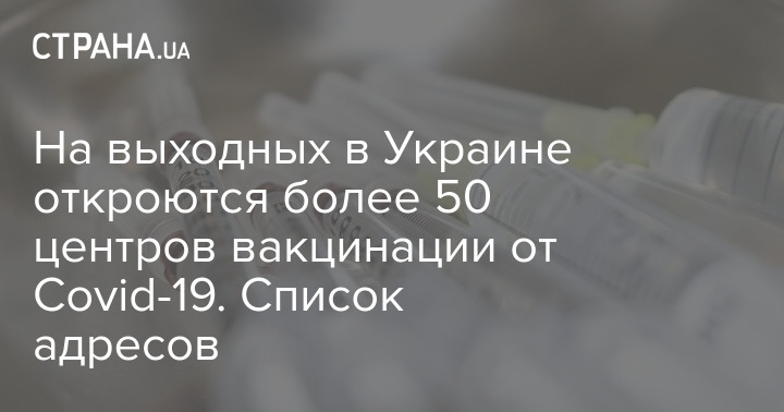 В выходные, 12-13 июня в 15 областях Украины будут работать более 50 региональных центров массовой вакцинации против Covid-19, сообщает Минздрав.