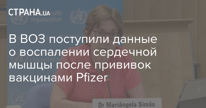 Всемирная организация здравоохранения (ВОЗ) получила данные о случаях миокардитов - воспалении сердечной мышцы после вакцинации от коронавируса препаратом производства Pfizer. ВОЗ изучает эту информацию.