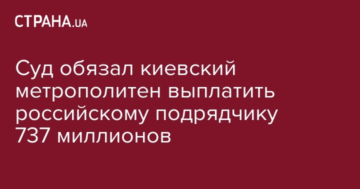 Суд обязал киевский метрополитен выплатить российскому подрядчику 737 миллионов