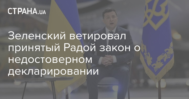 Зеленский ветировал принятый Радой закон о недостоверном декларировании