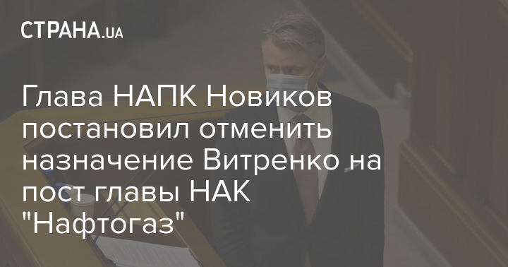 Глава НАПК Новиков постановил отменить назначение Витренко на пост главы НАК "Нафтогаз"