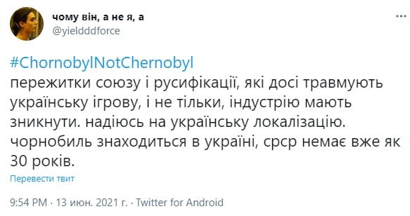 Националисты настаивают, что по законам украинского языка правильно было бы писать Chornobyl. Они недоумевают: почему украинские разработчики позволили себе выпустить трейлер на русском языке и допустили подобный перевод, который может создать впечатление того, что игра разработана в России, а не Украине.