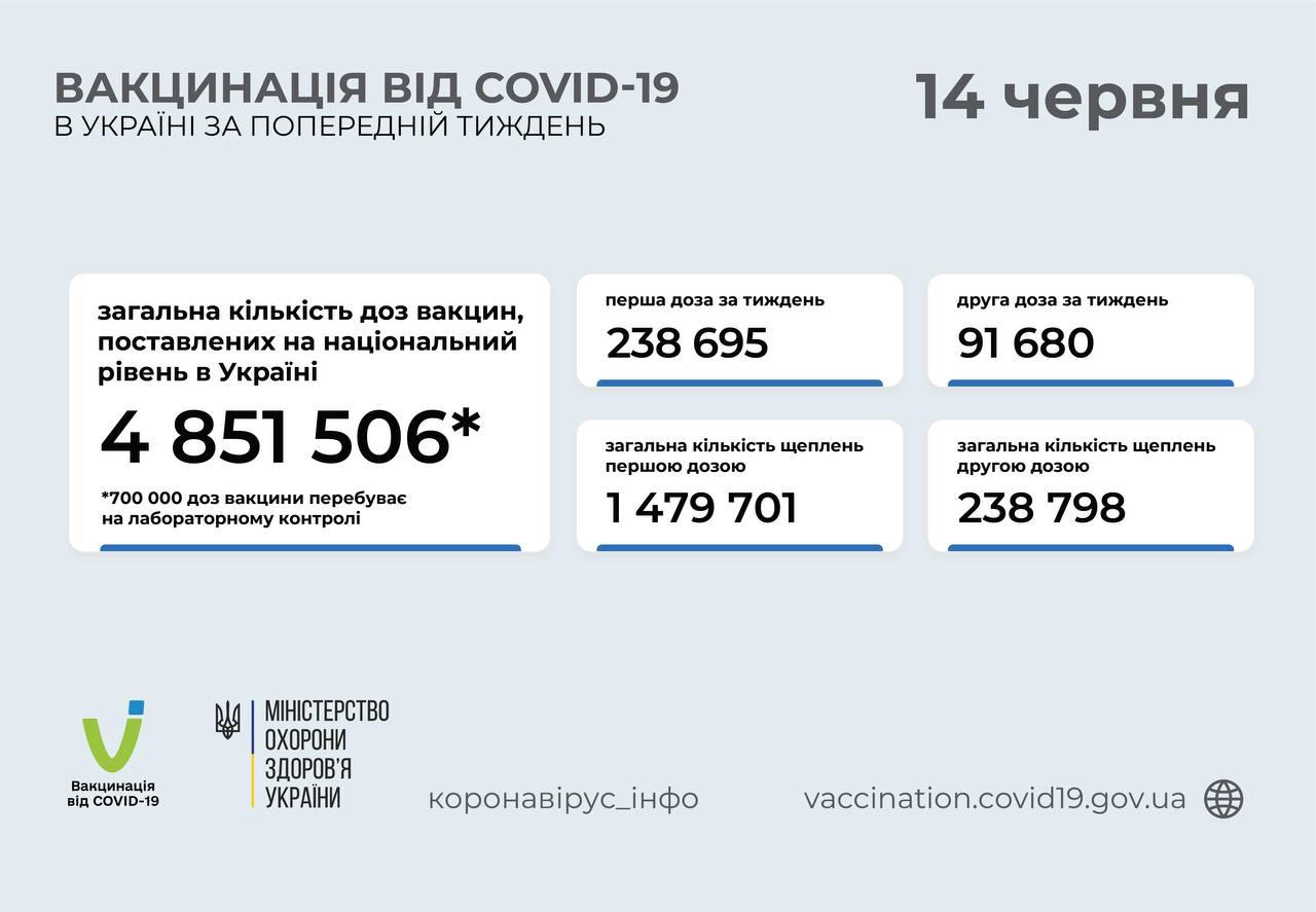 По состоянию на 15 июня Украина получила порядка 4 миллионов доз вакцины от коронавируса от разных производителей: