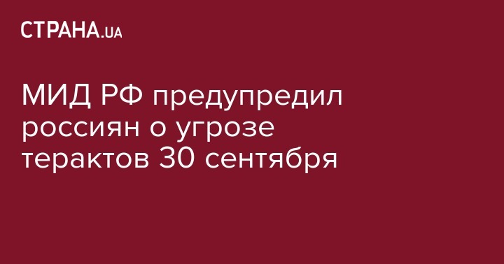 Министерство иностранных дел России предупредило граждан России о серьезной угрозе террористических атак против них за рубежом 30 сентября из-за призывов исламистов. Об этом сообщает пресс-служба дипломатического ведомства.