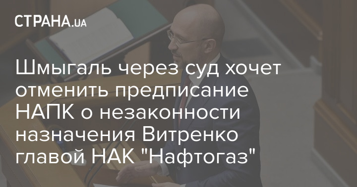 Премьер-министр Украины Денис Шмыгаль обратился в Окружной административный суд Киева, чтобы отменить предписание Национального агентства по вопросам предотвращения коррупции о незаконности назначения Юрия Витренко главой НАК "Нафтогаз Украины".