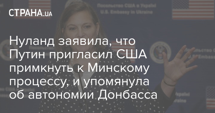 Нуланд заявила, что Путин пригласил США примкнуть к Минскому процессу, и упомянула об автономии Донбасса