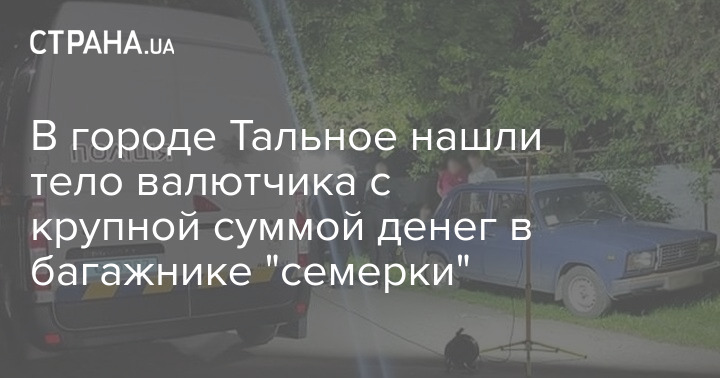 Труп мужчины с телесными повреждениями и крупную сумму денег как в гривнах, так и в долларах, обнаружили в багажнике автомобиля ВАЗ-2107, брошенном на одной из улиц в городе Тальное Черкасской области.