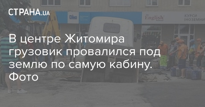 В центре Житомира грузовик провалился под землю. Фото: facebook.com/a.bliznjuk.zt