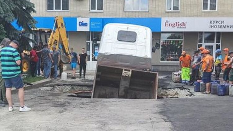 В субботу, 19 июня, в центре Житомира под асфальт провалился грузовик. Инцидент произошел рядом с жилой высоткой, на пешеходной зоне.